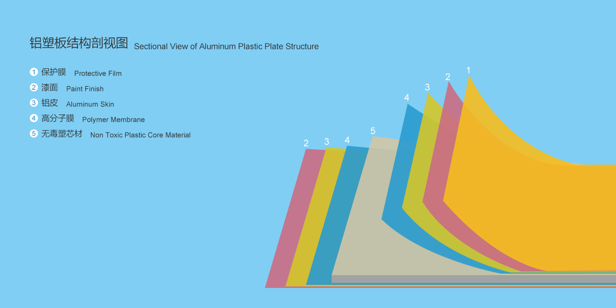 铝塑复合板简称铝塑板,是由经过表面处理并用涂层烤漆的铝板作为表面,聚乙烯聚丙烯塑料混合作为芯层,经过一系列工艺加工复合而成的新型材料。